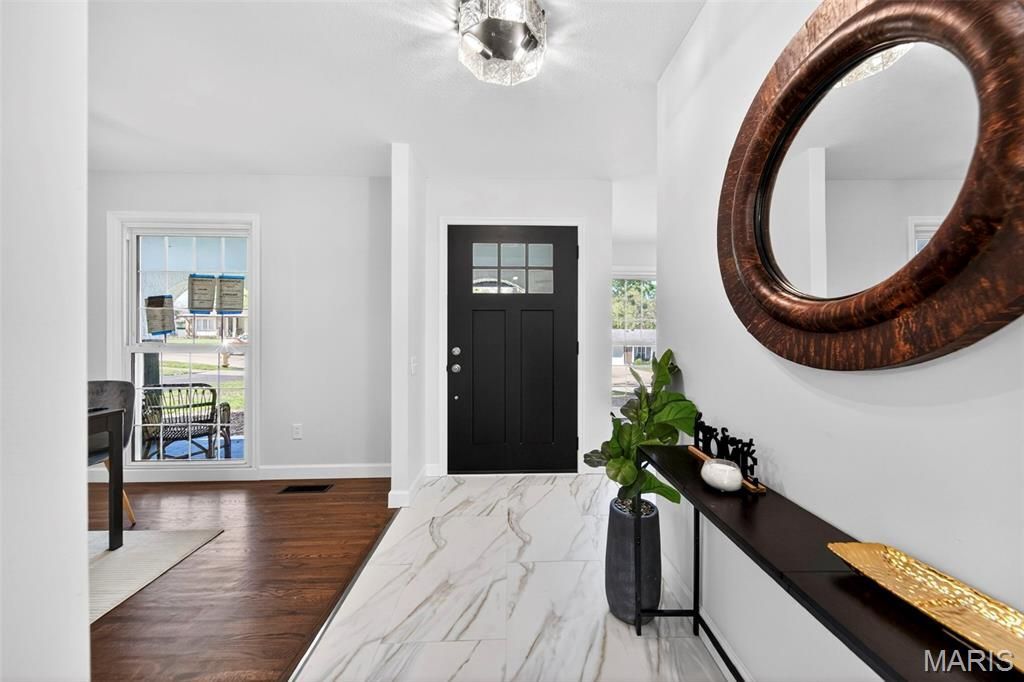 Welcome to a beautifully reimagined residence where modern design, thoughtful craftsmanship, and everyday functionality come together seamlessly. Offering over 3,200 sq ft of refined living space, this fully renovated 4-bedroom, 3 full bathroom home delivers the perfect balance of style and comfort in a sought-after Parkway School District location.From the moment you enter, you're greeted by a light-filled interior featuring refinished hardwood floors, fresh designer paint, and elevated lighting throughout. The main level offers a versatile and well-appointed layout, including a dedicated office space, formal dining area, and a newly added, spacious main floor laundry room designed for convenience.At the heart of the home, the kitchen makes a statement-featuring a generous 5x6 ft island, 42 custom cabinetry, timeless quartz countertops, designer backsplash, and stainless steel appliances. The open-concept flow into the living area creates an inviting atmosphere ideal for both everyday living and entertaining, while vaulted ceilings and architectural details add character and dimension.The primary suite serves as a private retreat, complete with dual closets-including a walk-in-and a beautifully updated en-suite bath showcasing an expanded 48x48 walk-in shower. Additional bedrooms are generously sized and thoughtfully designed.The finished lower level expands your living space even further, offering new carpeting, a full bathroom, updated plumbing, and endless possibilities for recreation, hosting, or relaxation-along with ample storage.Situated on a sizable lot, the exterior has been freshly painted and features a large deck perfect for outdoor enjoyment, along with a wrap-around 2-car garage and additional parking space. Some windows have been updated, enhancing both efficiency and overall appeal.Extensive updates include a new roof, updated systems, modern flooring, lighting, and finishes throughout-providing peace of mind and move-in ready convenienceThis right here my friends, is a one in a lifetime opportunity that you DON'T want to miss! Check it out before it's gone!