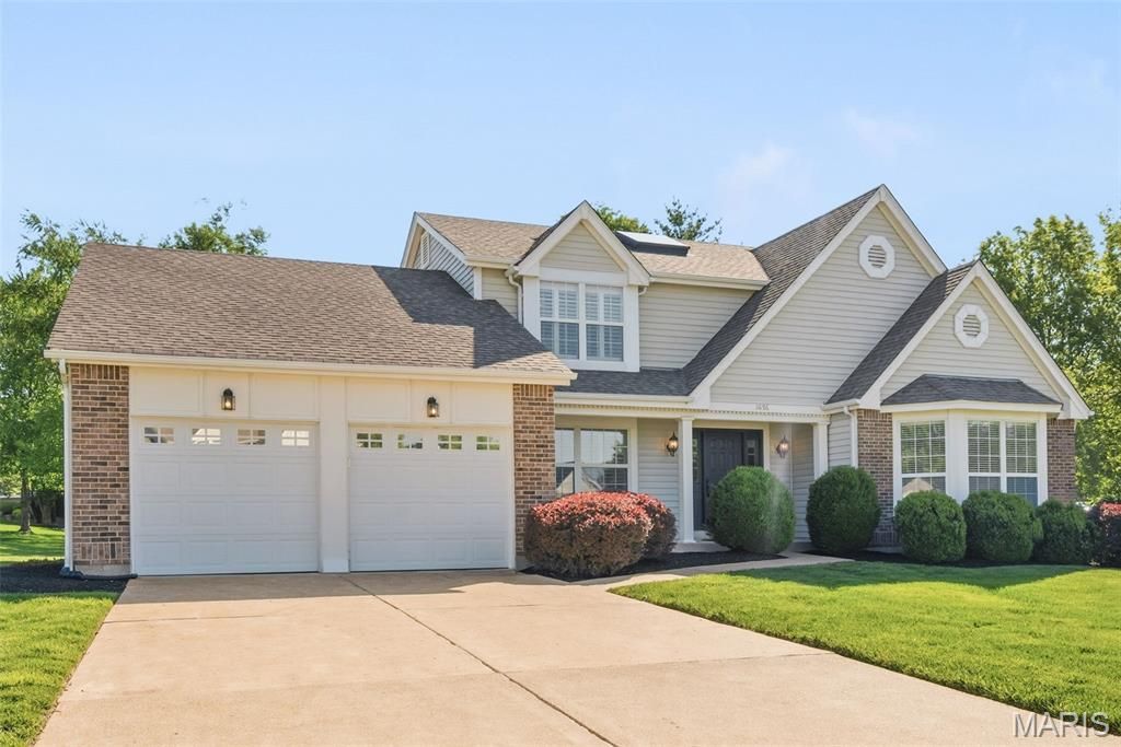 Meticulously maintained with exceptional curb appeal this refined 3-bedroom, 2.5-bath home offers an effortless blend of comfort and sophistication. From the moment you enter, a striking two-story foyer, rich hardwood flooring, and plantation shutters set a tone of understated elegance. The great room impresses with soaring cathedral ceilings, gas fireplace, and a trio of Palladian windows, filling the space with natural light. Designed for both everyday living and entertaining, the open-concept layout flows seamlessly into a well-appointed kitchen with stainless steel appliances and a quartz center island, ideal for both casual living and elevated entertaining. Host with ease with a dining area in the kitchen as well as separate formal dining room. French doors lead to a private patio and serene backyard, creating the perfect indoor-outdoor connection. A main floor laundry room off the two-car garage adds convenience. The expansive main-level primary suite provides a private retreat with dual walk-in closets and a spacious ensuite bath complete with double vanity, soaking tub, and separate shower. Upstairs you'll find a charming loft overlooking the great room, ideal for a home office, reading nook, or play space. Two generously sized bedrooms and a full bath complete the upper level. The unfinished basement provides ample storage or the opportunity to create additional living and entertaining space tailored to your needs. Recent updates include hardwood flooring, new carpet on stairs and loft, skylight, light fixtures, and refreshed powder room and upper-level bath. Located in the highly sought-after Rockwood School District and tucked just off Strecker Road between Manchester and Clayton, this home offers convenient access to shopping, dining, and everyday amenities.