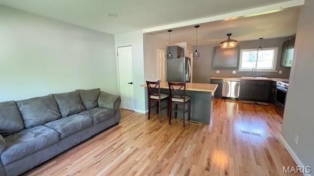 Beautifully maintained ranch featuring hardwood flooring throughout main level, updated kitchen with smart refrigerator, 5-burner gas range, self-circulating microwave, dishwasher (all <5 yrs), sealed butcher block countertops, center island with storage, and 42 soft-close cabinets, updated main bath, three bedrooms with blackout shades, finished lower level offers luxury vinyl flooring, separate laundry room, spacious rec room with rare original bar featuring copper top and foot rail, full bath with new shower and heated lighting, and walk-out family room to patio, large backyard with mature foliage and two storage sheds, oversized insulated garage, newer roof and HVAC system, move-in ready with numerous upgrades throughout.And so much more to see!